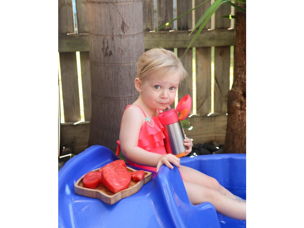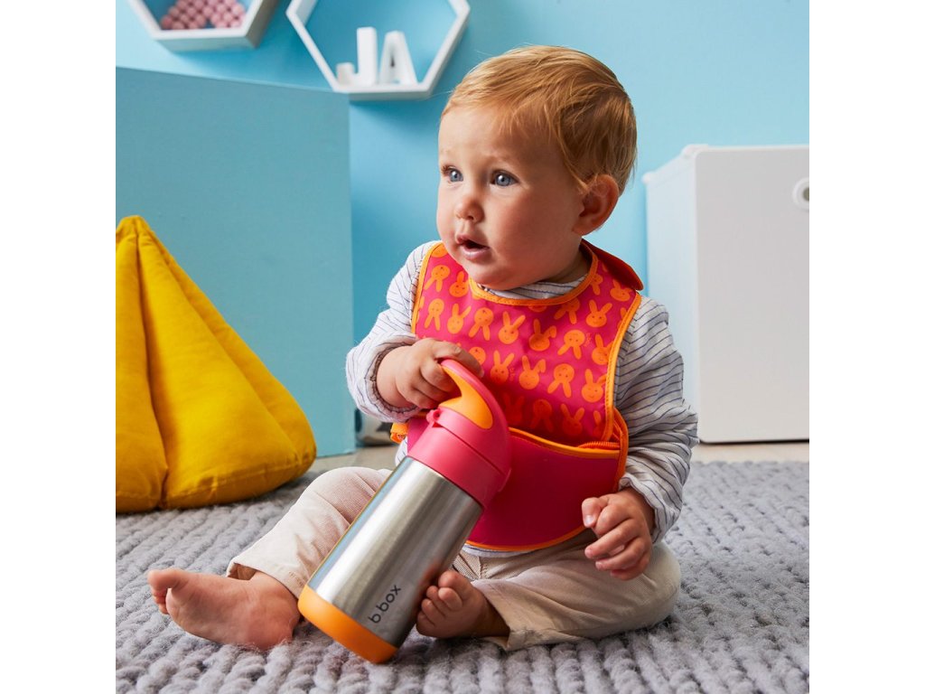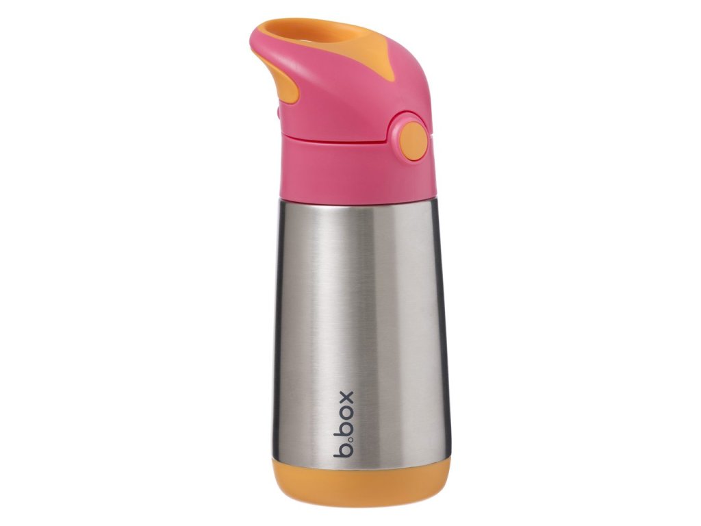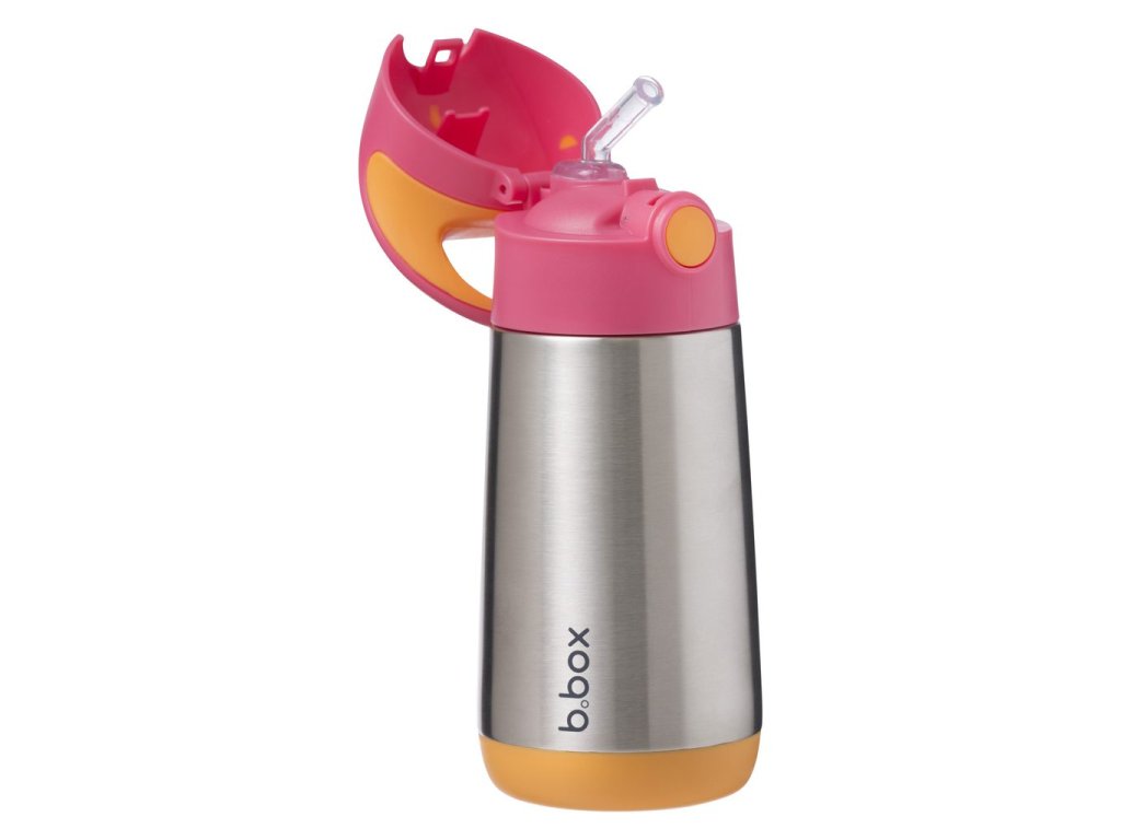 Dvouplášťová termoska z nerezové oceli udrží tekutiny studené až 8 hodin a teplé až 6 hodin. Silikonové brčko dovolí vypít z termosky i tu poslední kapku a víčko má držátko pro snadné nošení nebo zavěšení na batoh, kočárek apod. Termoska se po snadném zmáčknutí "tlačítka" lehce otevře.