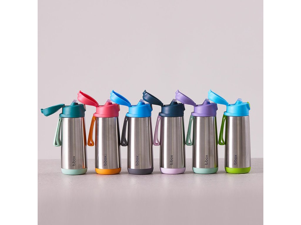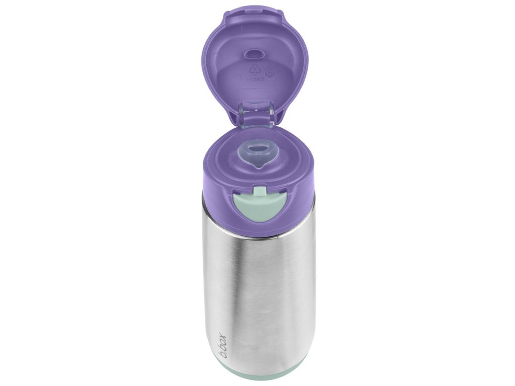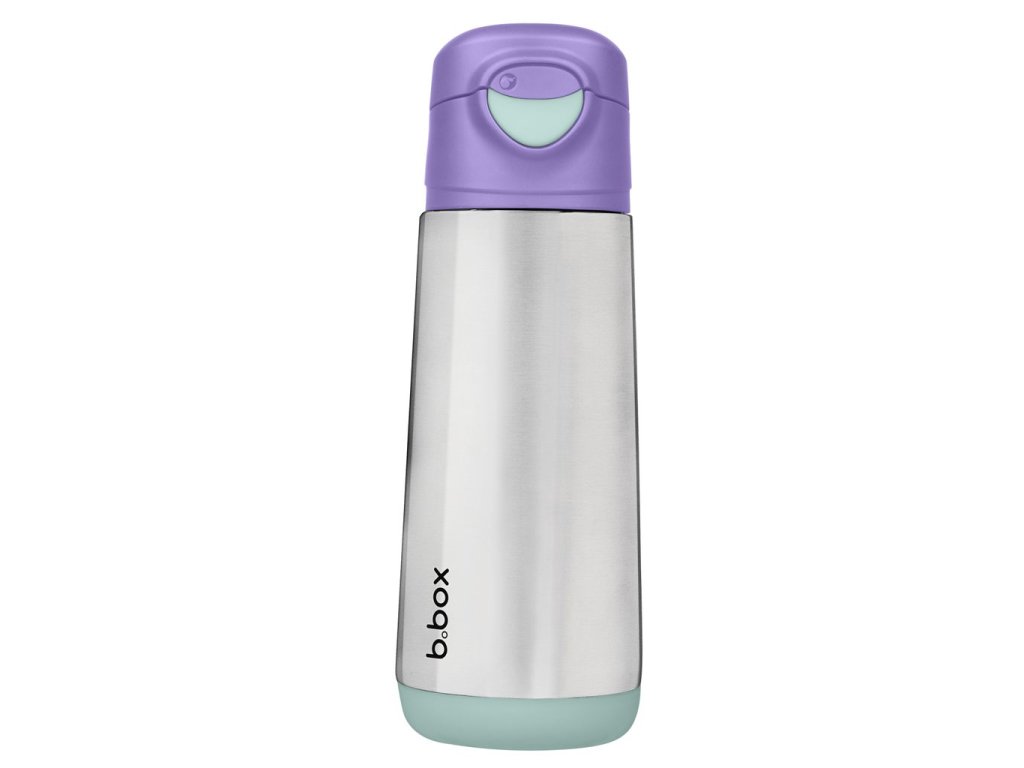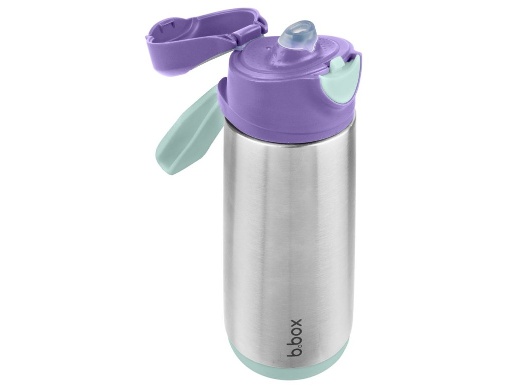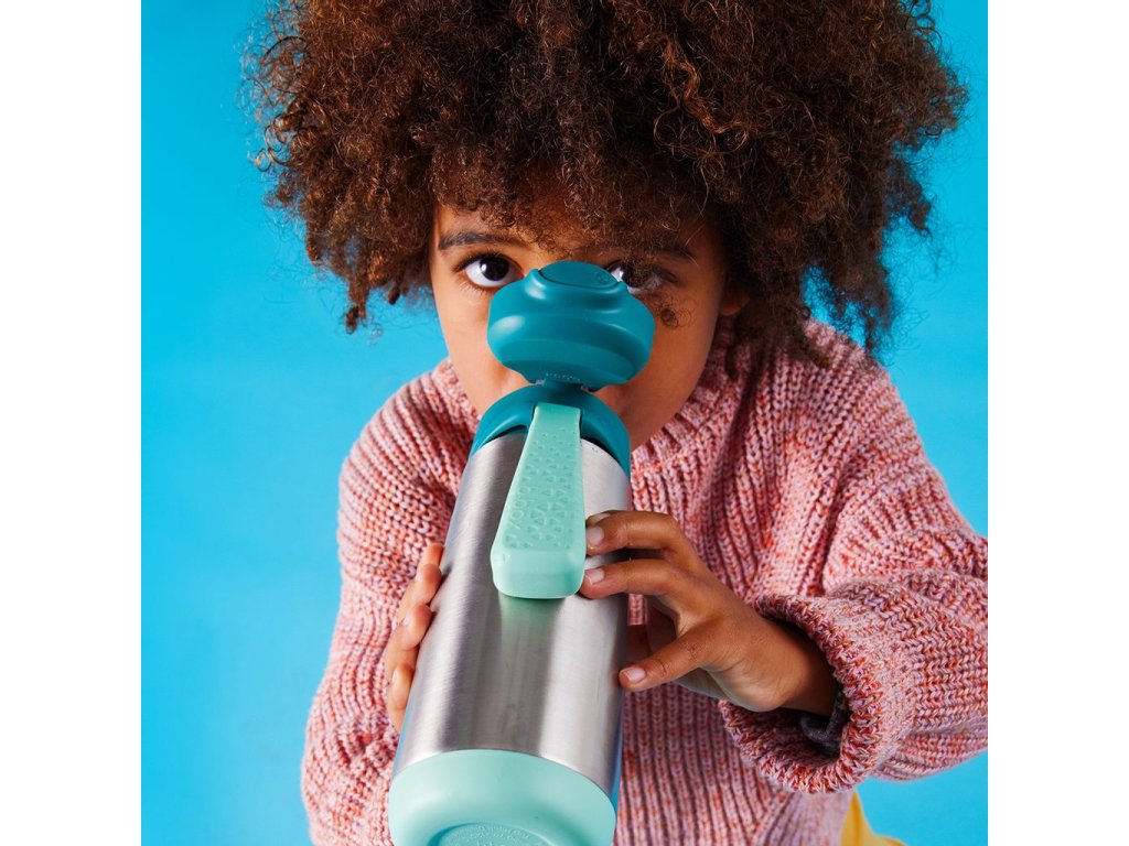 Dvouplášťová termoska z nerezové oceli udrží tekutiny studené až 15 hodin a teplé až 8 hodin. Termoska nabízí snadné průtokové pití z měkké silikonové savičky.