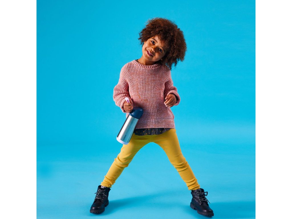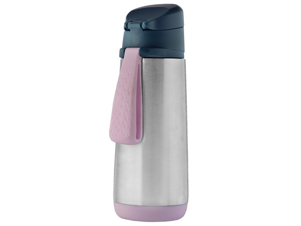 Dvouplášťová termoska z nerezové oceli udrží tekutiny studené až 15 hodin a teplé až 8 hodin. Termoska nabízí snadné průtokové pití z měkké silikonové savičky.