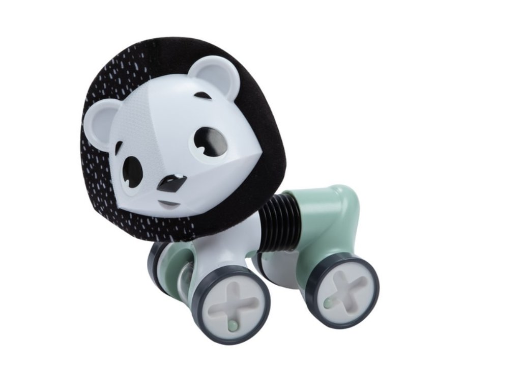 Jedinečný dizajn hračiek a flexibilný tvar harmoniky inšpirujú deti, aby prevrátili, natiahli, krútili a tlačili hračku – jednoducho aby objavovali nové možnosti hry. Šušťajúce uši, kolesá s guľôčkami a zvuk kliknutia pri otočení hlavy motivujú dieťa k objavovaniu a hre.