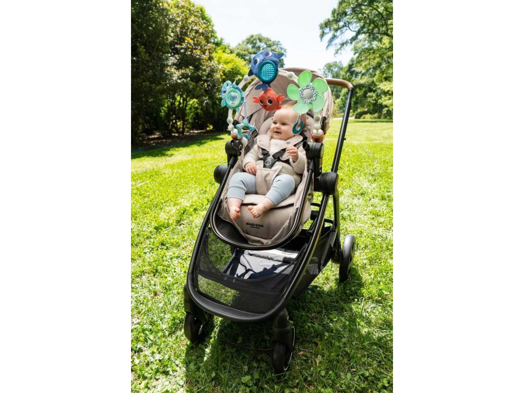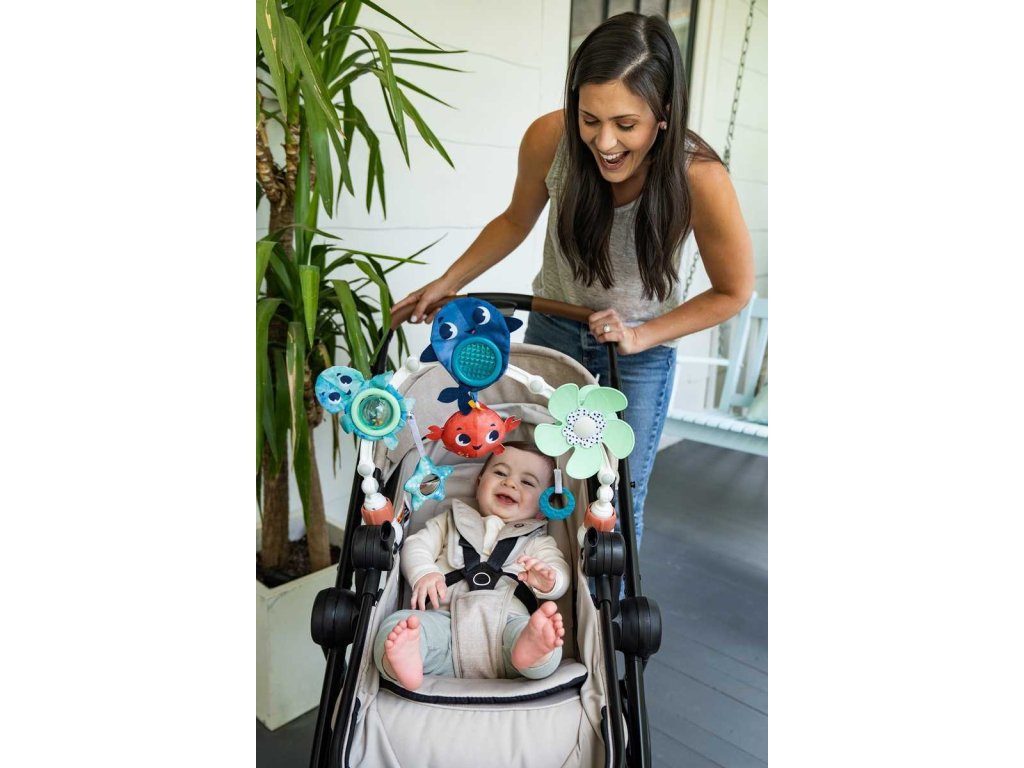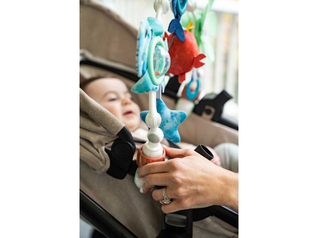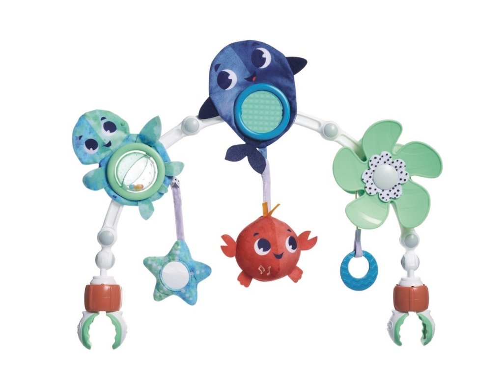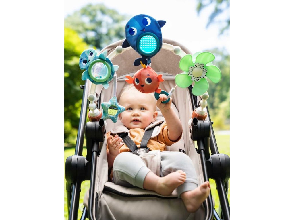 Hudobná hrazda s hračkami Treasures of the Ocean je jedinečný produkt, ktorý po pripevnení na autosedačku, odrážadlo alebo kočík spestrí chvíle batoľaťa.