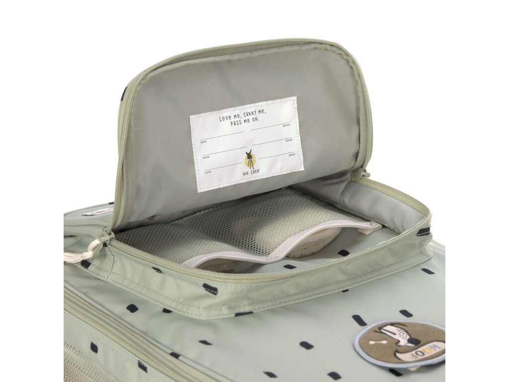 •obrázok so zvieratkom na prednej strane kufra, ktorý je možné prichytiť pomocou patentky a premiestniť na predné vrecko