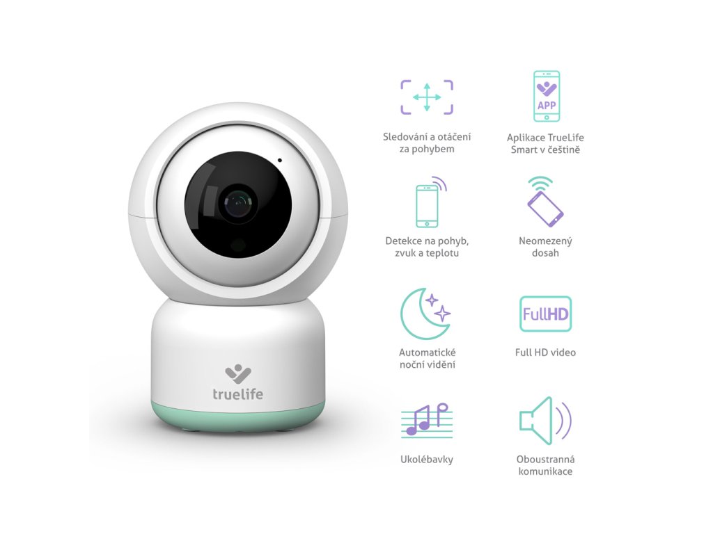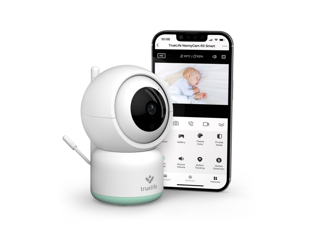 Rotačná pestúnka TrueLife NannyCam R3 Smart dokáže sledovať pohyb a otáčať sa za ním. Navyše jej širokouhlá šošovka vidí do všetkých zákutí a v šere automaticky aktivuje nočné videnie. Dosah pestúnky je vďaka pripojeniu cez internet neobmedzený a vo chvíli, keď máte obrazovku telefónu vypnutú, ona určite nespí. Zaznamená každý pohyb a zvuk a pošle vám oznámenie do vášho telefónu. Záznam navyše môže nahrávať aj v režimu 24/7 na SD kartu.
