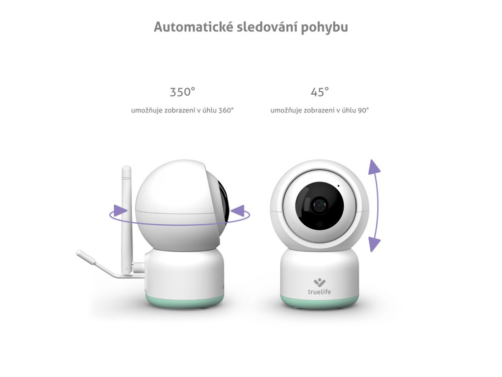 Rotačná pestúnka disponuje schopnosťou zachytiť pohyb a otáčať sa za ním. Túto funkciu môžete napríklad využiť pre staršie deti či domácich miláčikov.