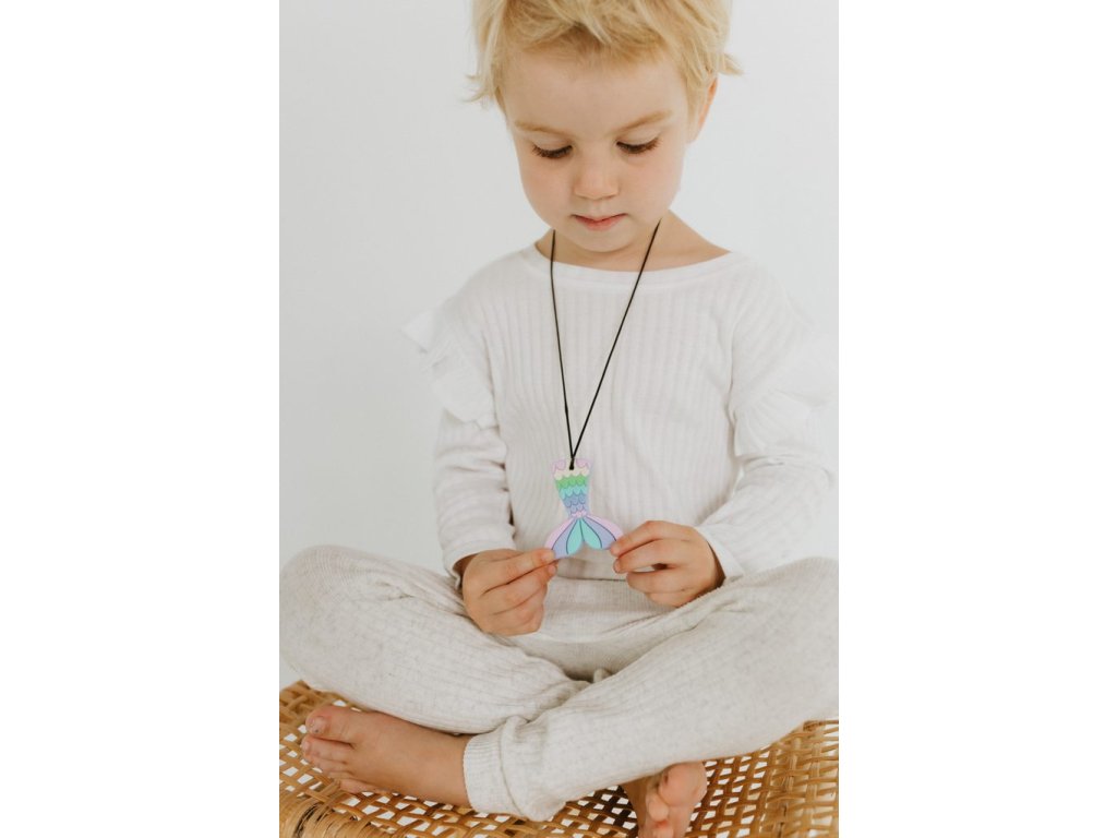 Žvýkací přívěsek v designu mořské víly je nejen veselým a hravým doplňkem, ale především uklidňujícím přítelem, na kterého se vaše dítě může spolehnout, když hrozí, že jeho den zatemní velké emoce. Přívěsky pro uklidnění jsou zajištěny praktickou šňůrkou se sponou, která je navržená tak, aby se při zatahání snadno rozepnula.
