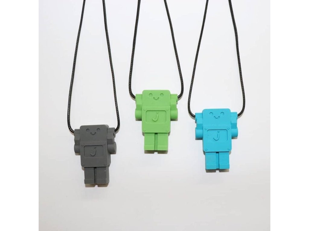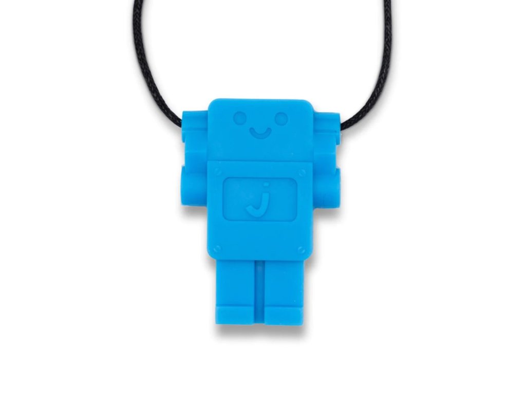 Žvýkací přívěsek Robot australské značky Jellystone Designs je uklidňujícím přítelem, na kterého se vaše dítě může spolehnout, když hrozí, že jeho den zatemní velké emoce. Silikonový přívěsek robota je doporučován ergoterapeuty jako nástroj, který může vaše dítě používat samostatně k rozvoji účinné kontroly reakcí svého nervového systému.