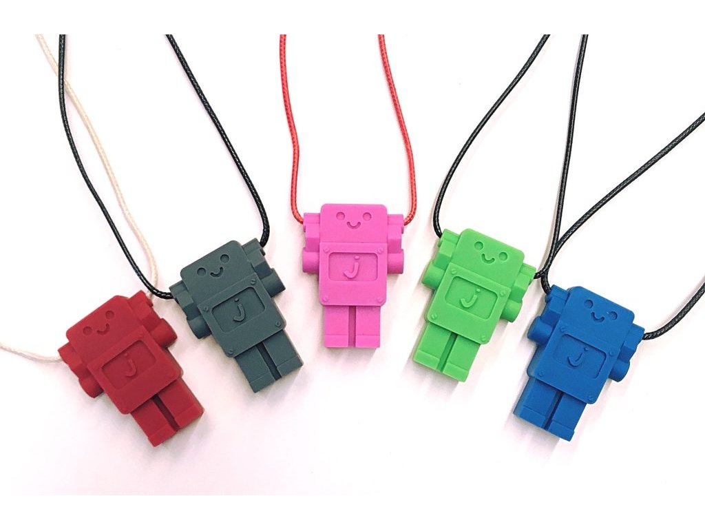 Žvýkací přívěsek Robot australské značky Jellystone Designs je uklidňujícím přítelem, na kterého se vaše dítě může spolehnout, když hrozí, že jeho den zatemní velké emoce. Silikonový přívěsek robota je doporučován ergoterapeuty jako nástroj, který může vaše dítě používat samostatně k rozvoji účinné kontroly reakcí svého nervového systému.