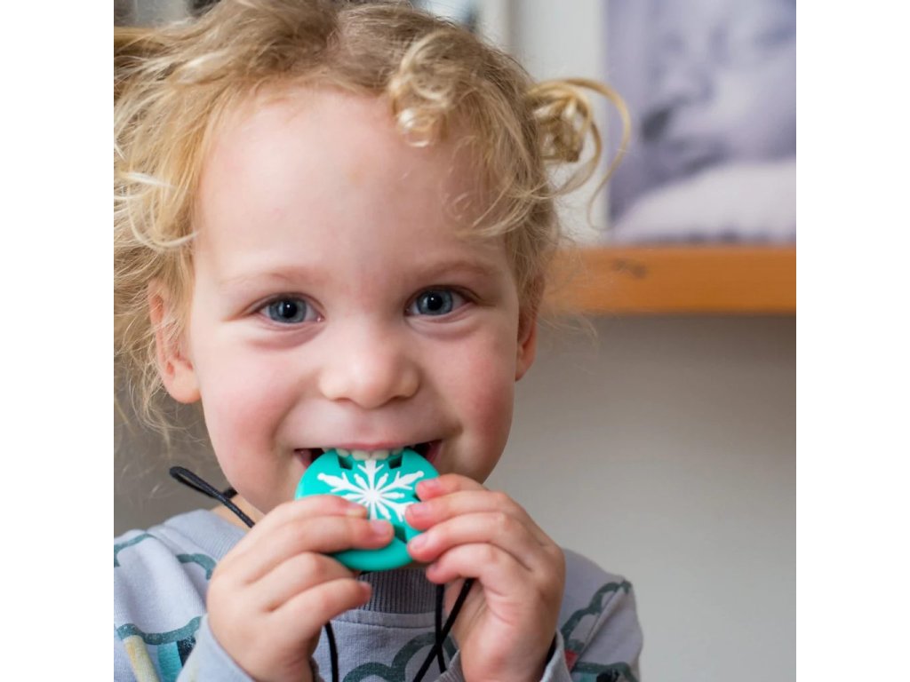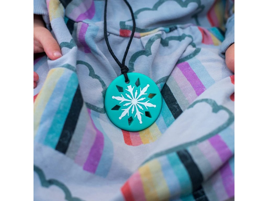 Žvýkací přívěsek Sněhová vločka je uklidňujícím přítelem, na kterého se vaše dítě může spolehnout, když hrozí, že jeho den zatemní velké emoce. Silikonový přívěsek je doporučován ergoterapeuty jako nástroj, který může vaše dítě používat samostatně k rozvoji účinné kontroly reakcí svého nervového systému.