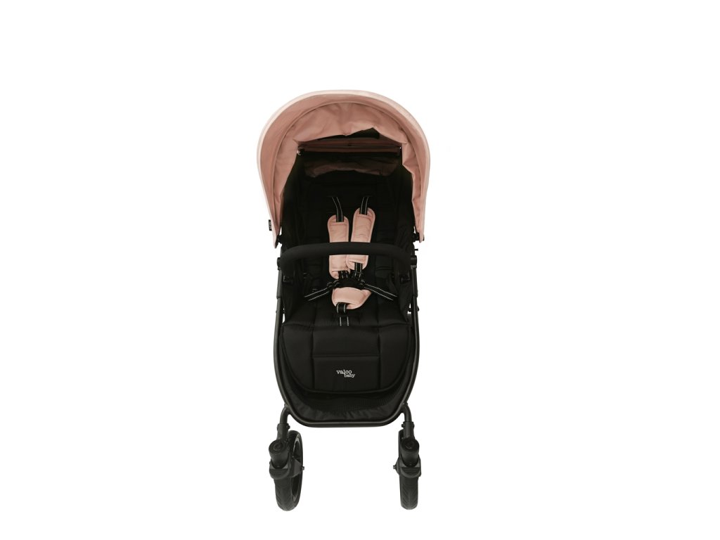 - Nadčasová konštrukcia sedadla umožňuje väčšiu voľnosť pohybu, sedadlo je plne polstrované a vďaka svojej priestrannosti si môžu deti užívať kočík dlhšiu dobu.