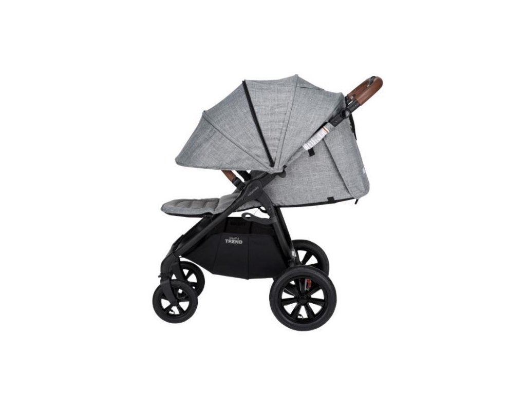 Novinkou kočíka Trend 4 je polohovacia rukoväť. Rukoväť i ochranné madlo sú potiahnuté ekologickou kožou, ktorá kočíku prepožičiava luxusný vzhľad. Ochranné madlo, ktoré zároveň slúži ako poistka pred dieťaťom, možno otvárať z oboch strán.