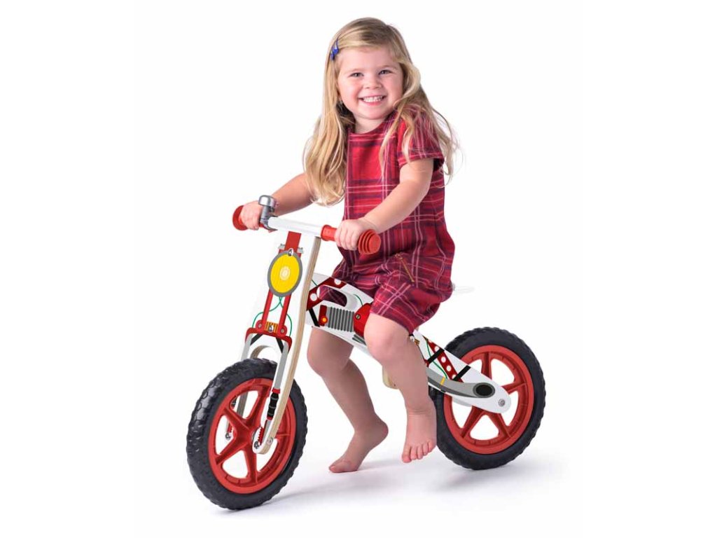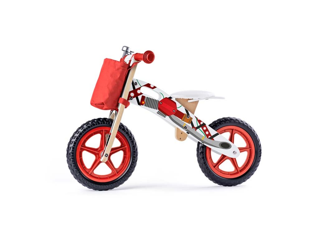 Odrážadlo z dreveného materiálu v dizajne motorky v červenom farebnom prevedení je vynikajúce pre prípravu na prvú jazdu na bicykli. Odrážadlo má ľahkú drevenú konštrukciu. Systém dorazov riadidiel bráni nehodám pri pretočení, viac polôh sedla a bezpečnostný zvonček. Odnímateľná, látková kapsička na riadidlách. Deti získajú rovnováhu a naučia sa riadiť.