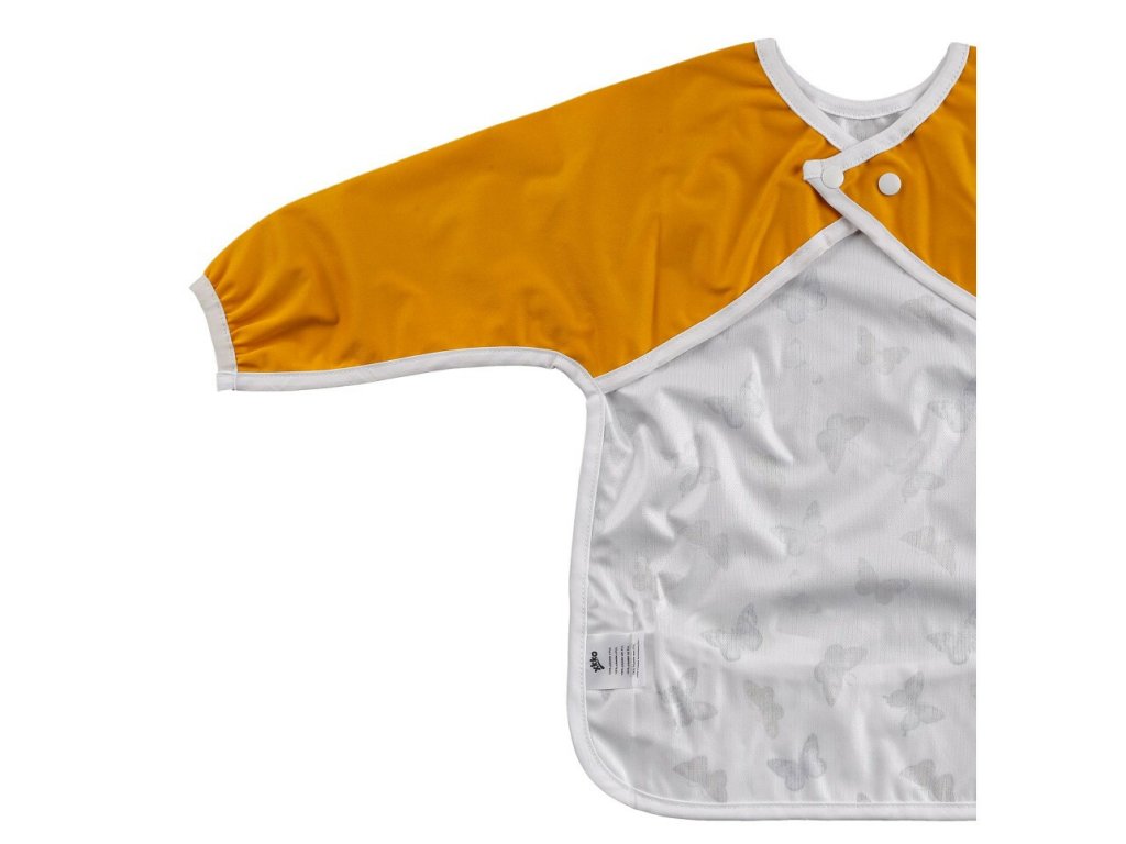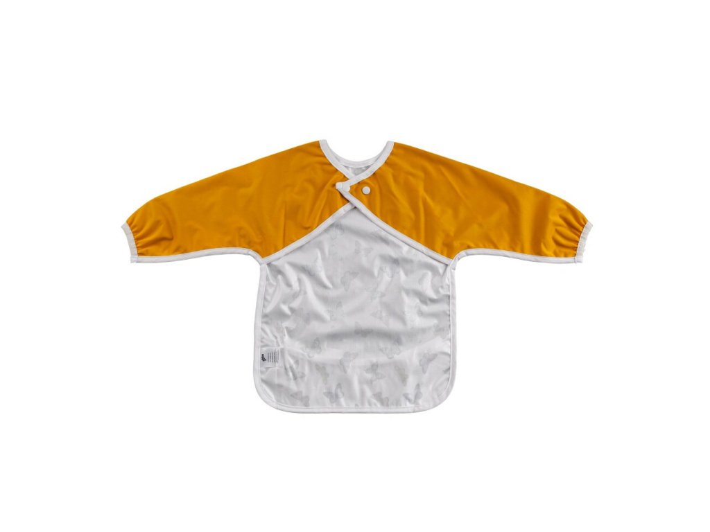 Praktický podbradníček XKKO s rukávmi a vreckom, ktorý chráni outfit vášho dieťaťa pri kŕmení alebo pri prvých umeleckých pokusoch s farbami. Vonkajšie vrecko zachytí omrvinky alebo prípadnú stekajúcu tekutinu.