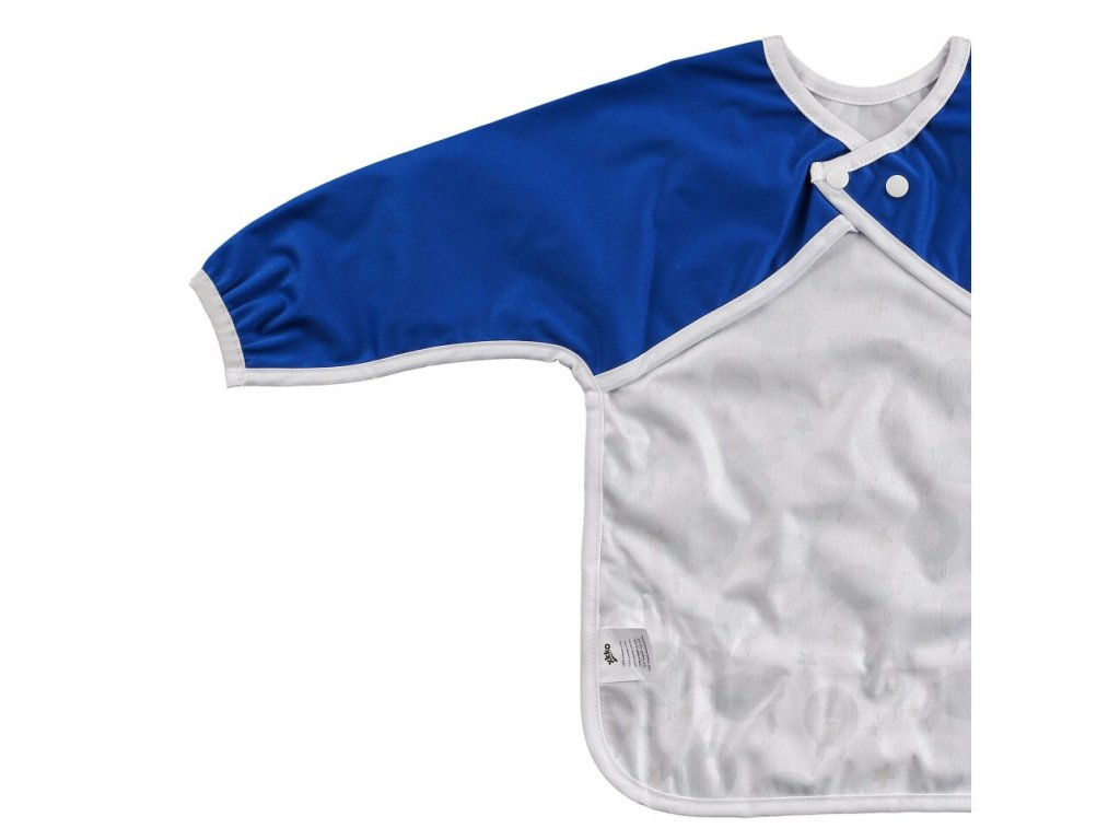 Praktický podbradníček XKKO s rukávmi a vreckom, ktorý chráni outfit vášho dieťaťa pri kŕmení alebo pri prvých umeleckých pokusoch s farbami. Vonkajšie vrecko zachytí omrvinky alebo prípadnú stekajúcu tekutinu.