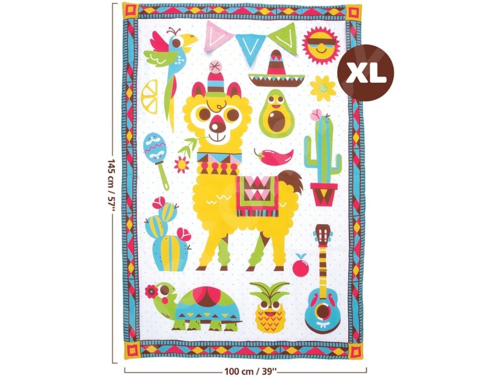 Mimoriadne priestranná hracia deka, ktorú ľahko zbalíte do tašky pre jednoduché prenášanie k vnútorným aj vonkajším aktivitám.
