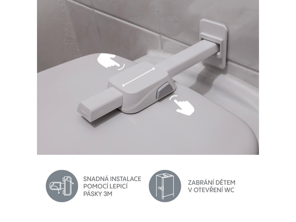 Ťažko by ste v dome našli miesto, ktoré priťahuje pozornosť detí viac ako kúpeľňa a toaleta. Je to lákavé miesto na schovávanie predmetov a hranie sa s vodou. Zámok zabraňuje deťom otvoriť toaletu a udržiava veko toalety bezpečne zamknuté, čím zabraňuje nehodám a poskytuje rodičom pokoj.