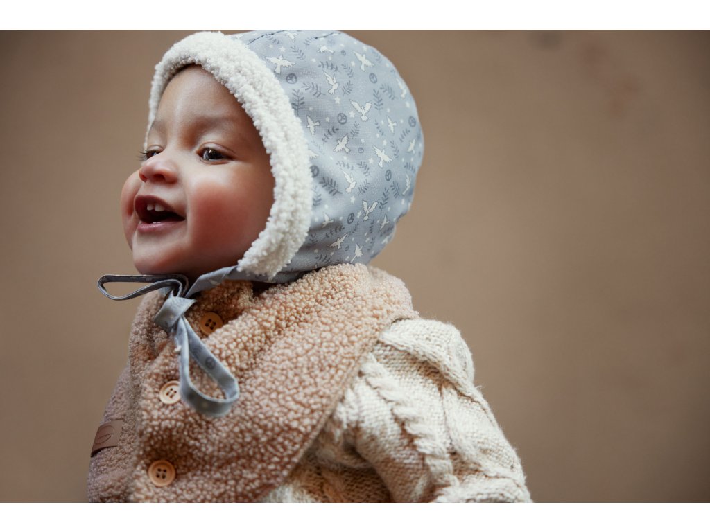 Elodie zimní čepeček z nové kolekce je navržen tak, aby vypadal jako retro čepeček a zároveň byl 100% funkční. Podšívka je z velmi měkkého materiálu pro větší pohodlí. Lze je pod krkem zavázat pomocí šňůrek. Kolem hlavičky má čepeček měkkou shearling tkaninu.